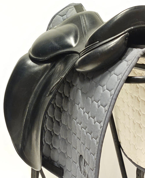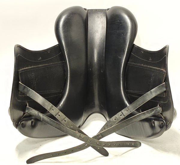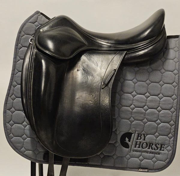 Populär dressyrsadel från Luc Childeric som är tillverkad 2020. Halvdjup sits och stora knästöd. Fantastisk bra grepp. Childeric DFI passar breda, lite runda hästar. Normal till svängd i ryggen med normal manke. Passar en normallång - till lite kortare ryttare.