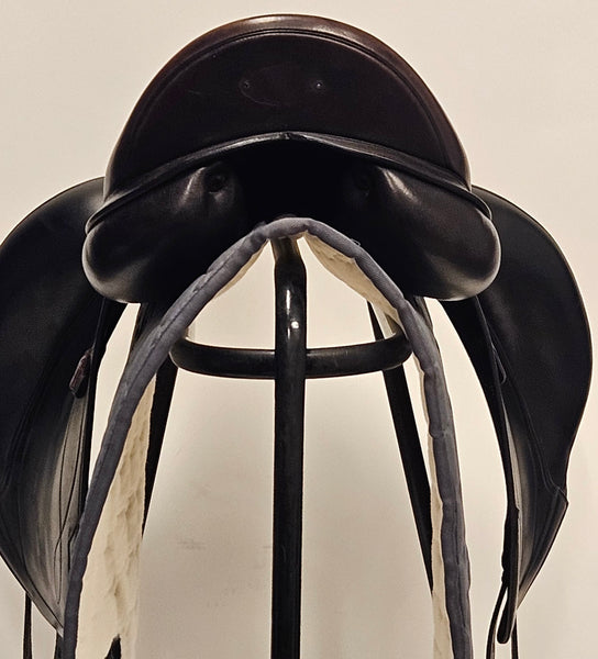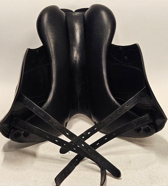 Populära dressyrsadeln Olympia är en riktig storsäljare från Equipe. Den har ett djupt säte med smal midja. Lite framvinklat stöd för överskänkeln för en optimal position i sadeln. Sittpunkten är lite längre bak än på Emporion. Passar en ryttare av normallängd med en något längre överskänkel. Sadeln passar en häst med lite svängd eller lite sänkt rygg och som har en normal manke. Syntetbom med livstidsgaranti.