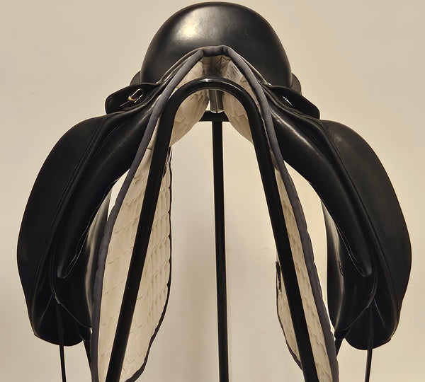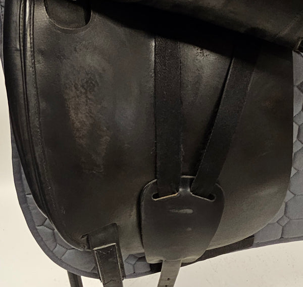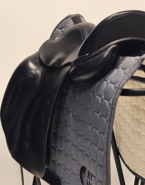 En äldre dressyrsadel som är i mycket fint skick för sin ålder. Träbom och latexpaneler. Sparsamt använd av fåtal ryttare.
