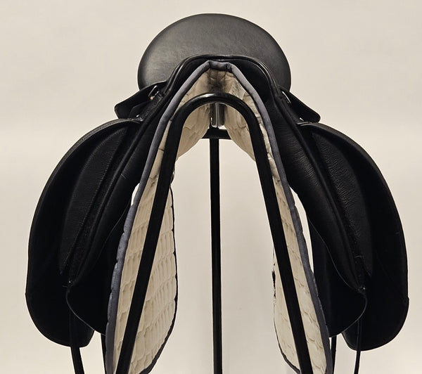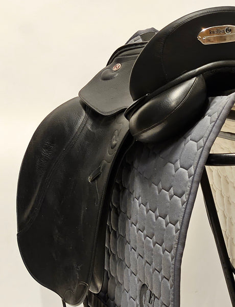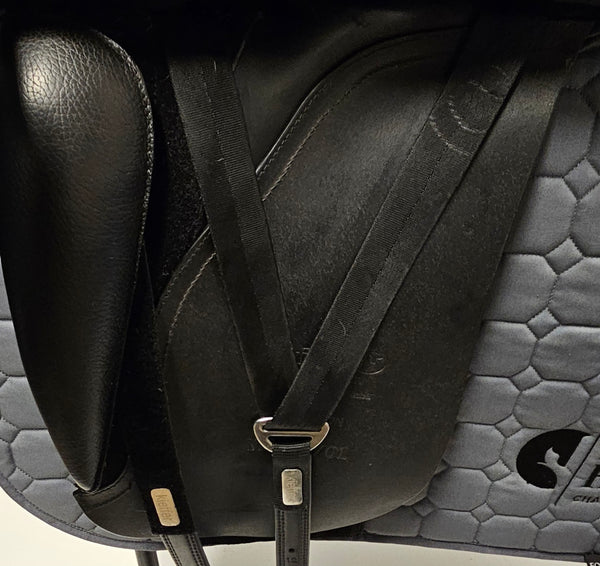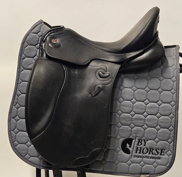 Denna innovativa dressyrsadel erbjuder hög komfort för hästen. Knästöden med kardborre är utbytbara och erbjuder en justering för att anpassa sig till ryttaren. En elegant sadel som kombinerar funktionalitet med design. Dubbelkåpor, ullstoppning, djup sits.